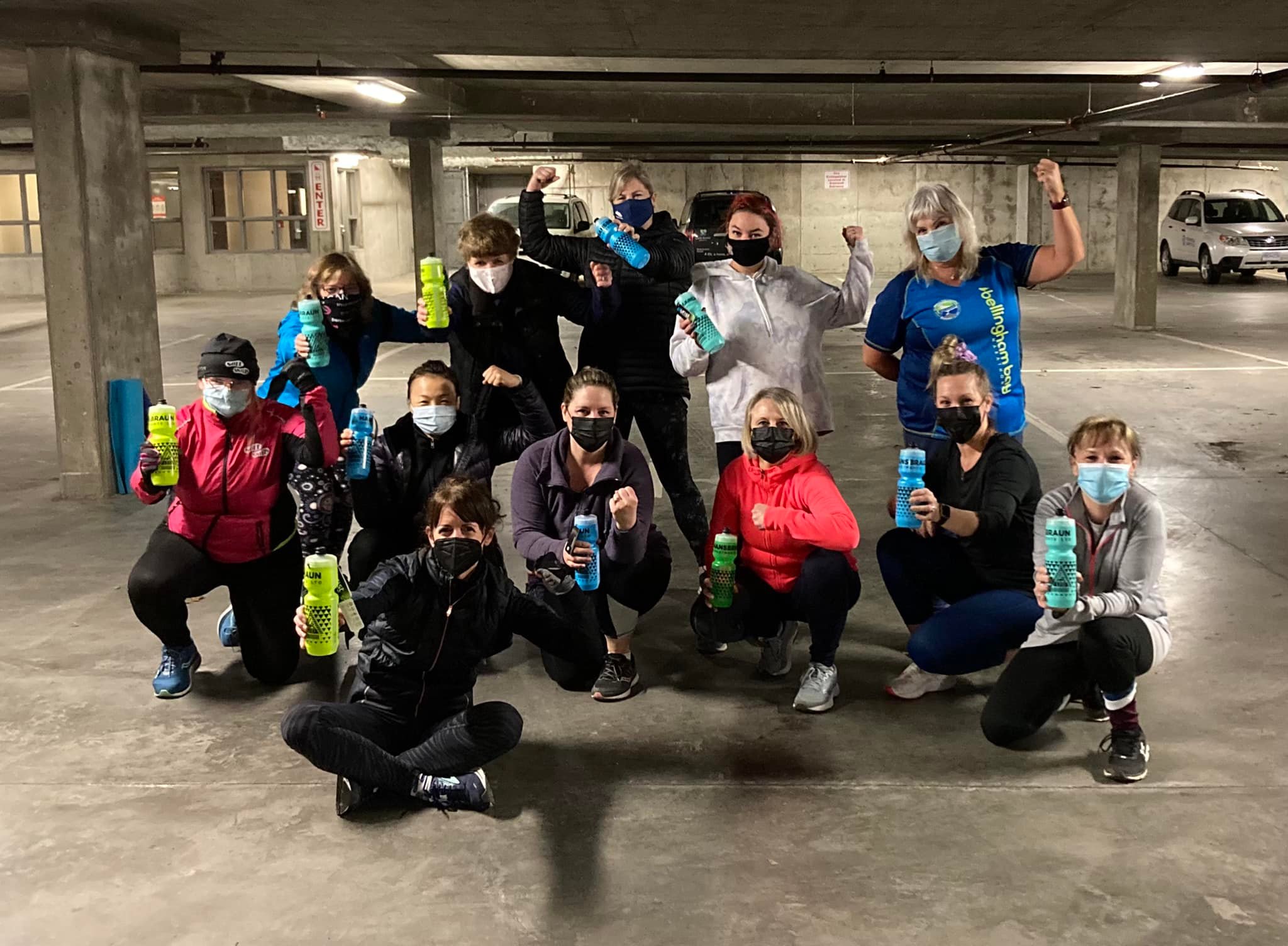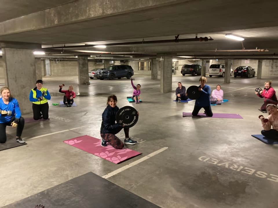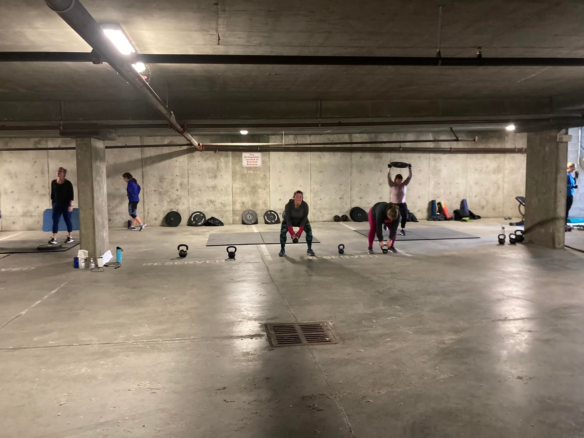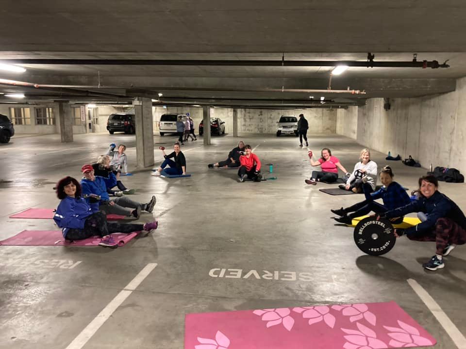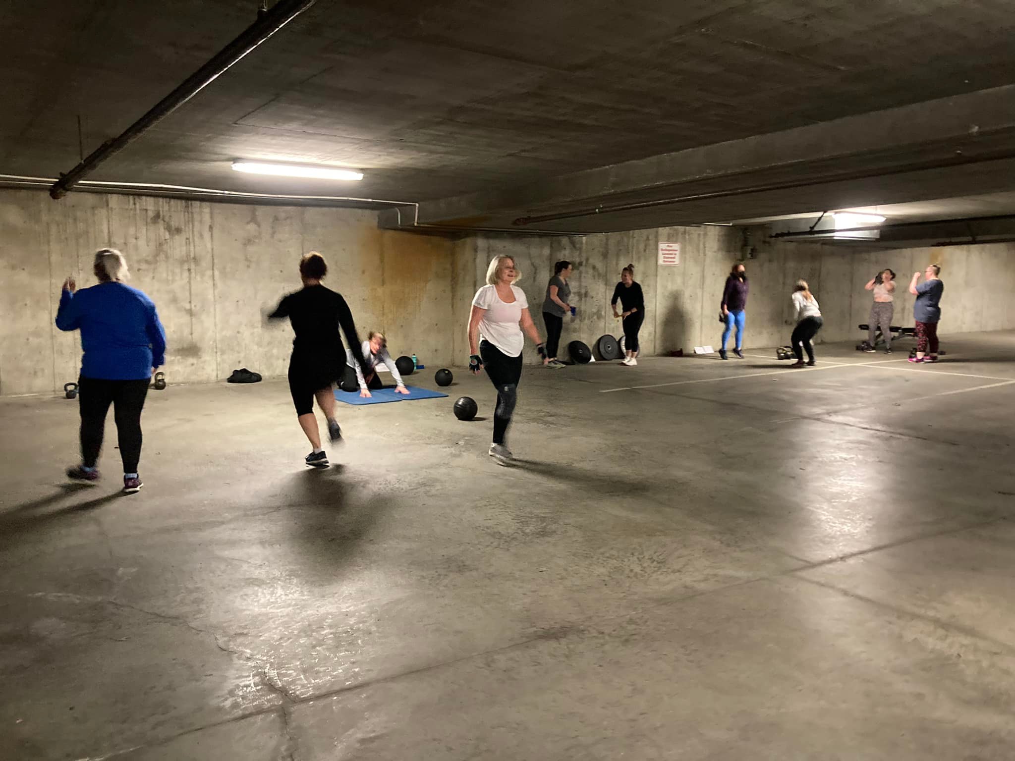 Currently 50′ Fit is operating out of the underground parking lot, aka “My Sister’s Basement” in Gateway Village located at 771 Vernon Avenue across from the Saanich Municipal Hall/Saanich Fire. Great news – we have access to a private bathroom!